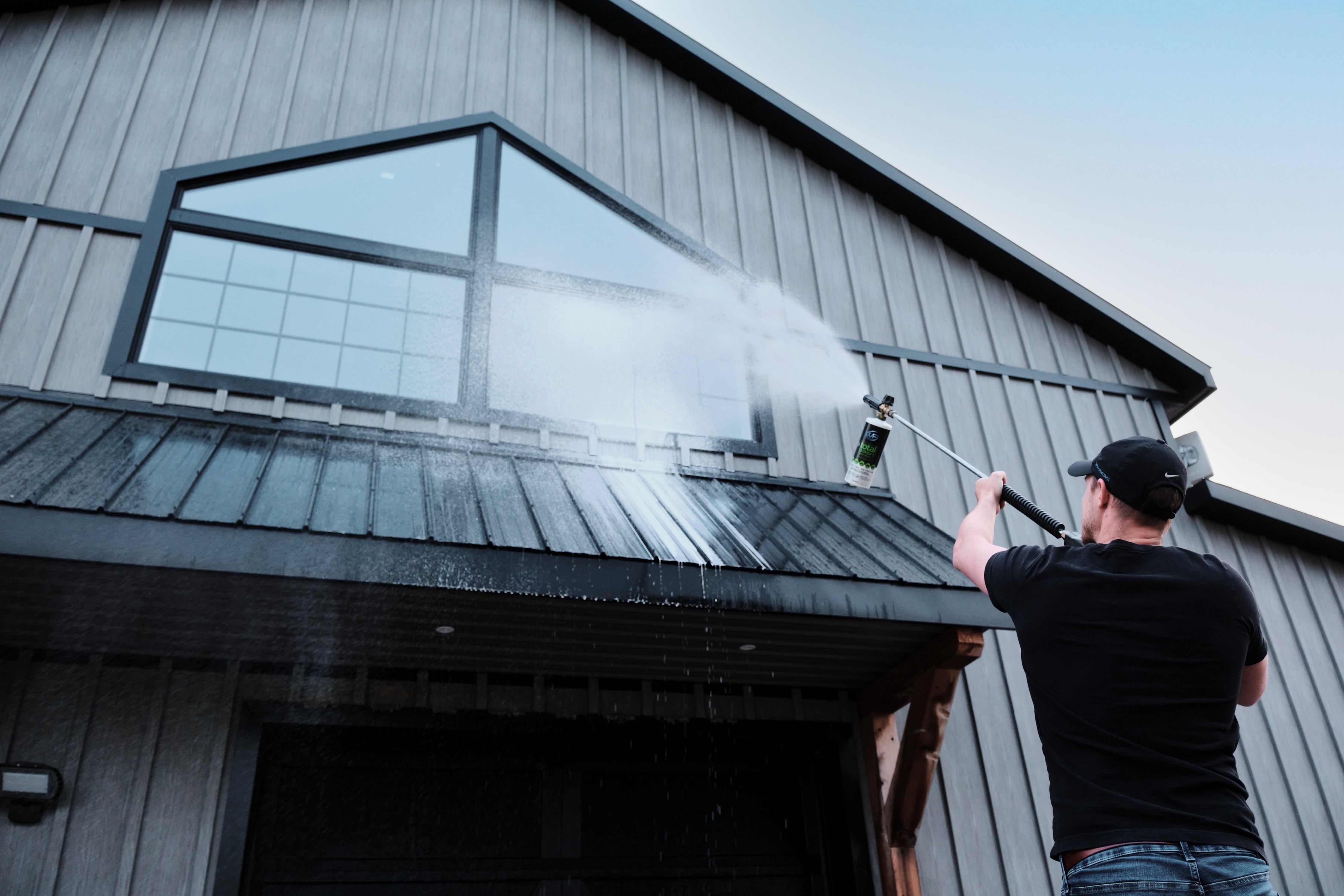 using the Total Wash Foam cannon you can cover large areas fast and clean out of reach places without ever taking out a ladder.